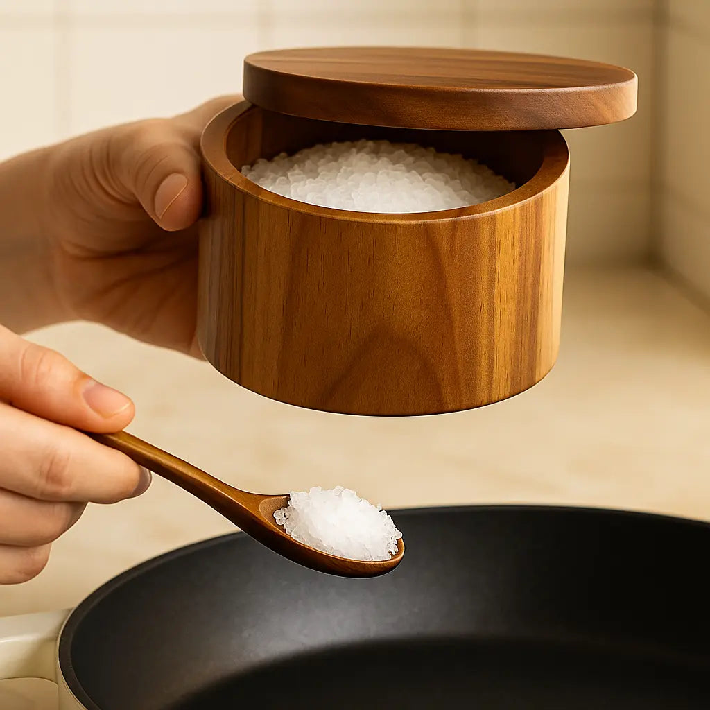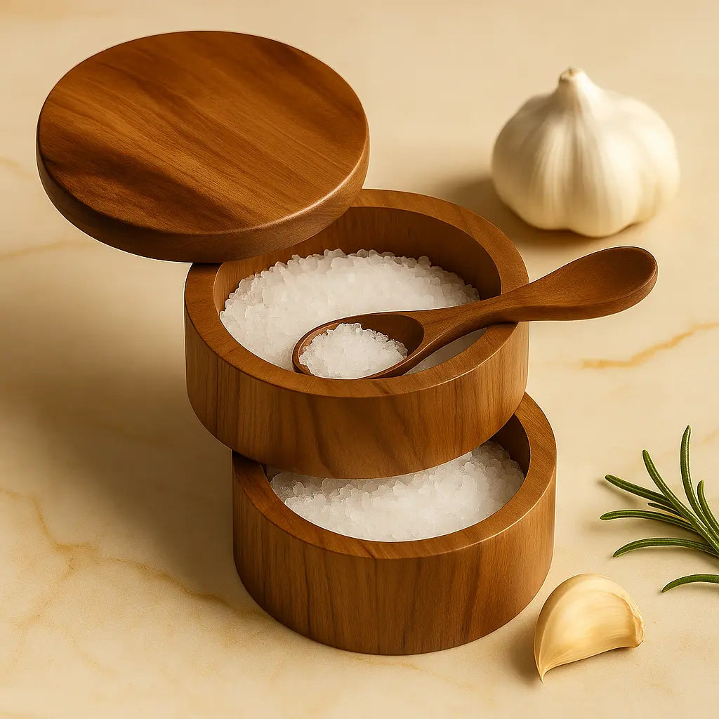 Natural Acacia Wood Salt & Pepper Cellar + Spoon Included